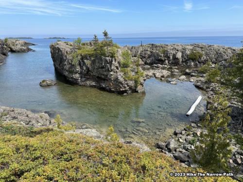 We took the The Isle Royale Line from Copper Harbor to Isle Royale. It took around 3.5 hours to get there. Once there, the NP rangers provided an overview of the island and safety information. We ate lunch at the Greenstone Grill, then hiked to Scoville Point – 4.2 mile loop.