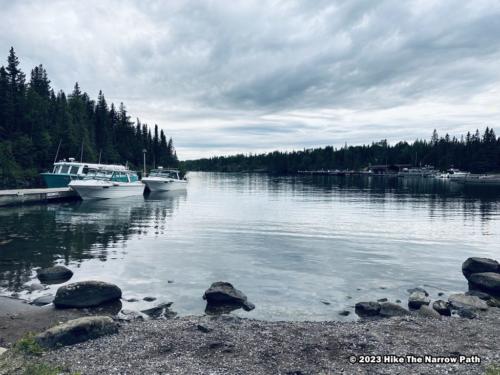 Once we finished our hike, we checked in to our rooms at Rock Harbor Lodge and got settled in. On our way to dinner at the Lighthouse Restaurant, we saw our first moose by the water/restaurant area.