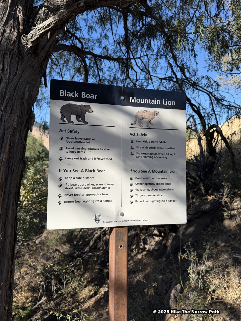 Our first hike was the Chisos Basin Loop Trail, a moderate 1.9 mile trail. There were safety signs at the beginning as it was black bear and mountain lion country. The terrain was a but rocky. Overall, it was a nice rugged hike but was hot already even though it was still early in the morning.