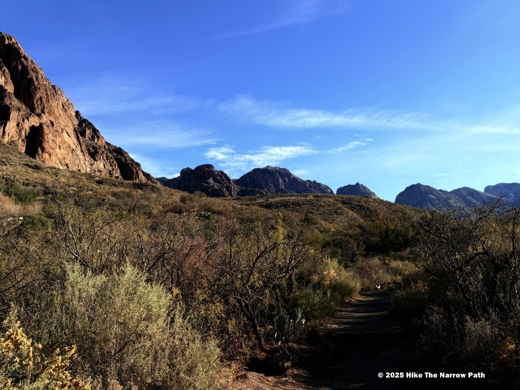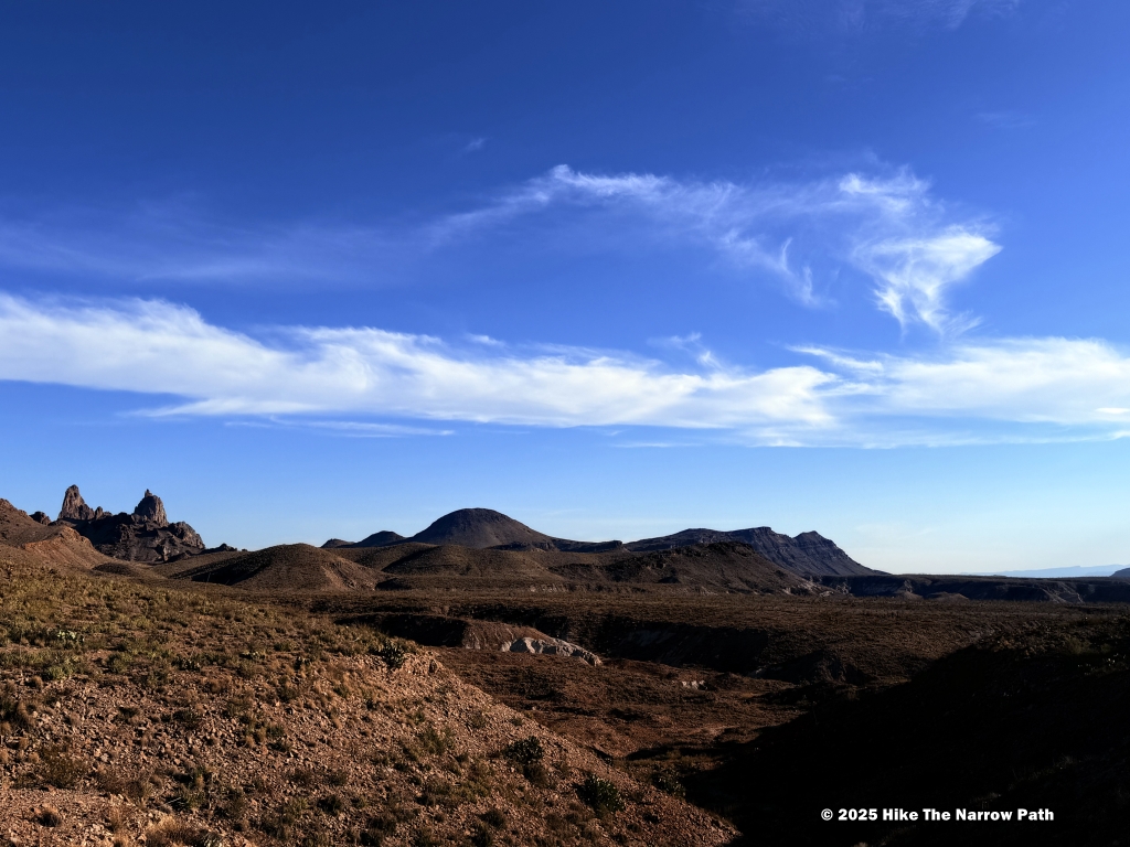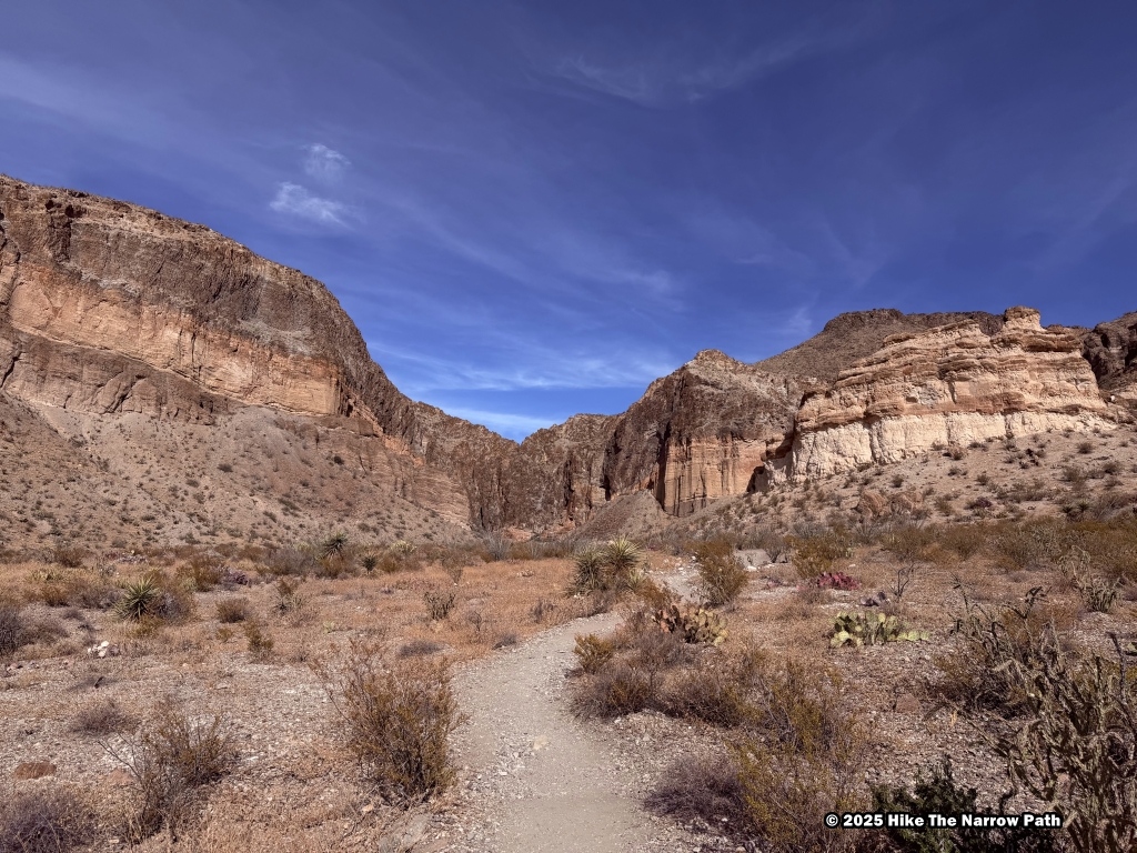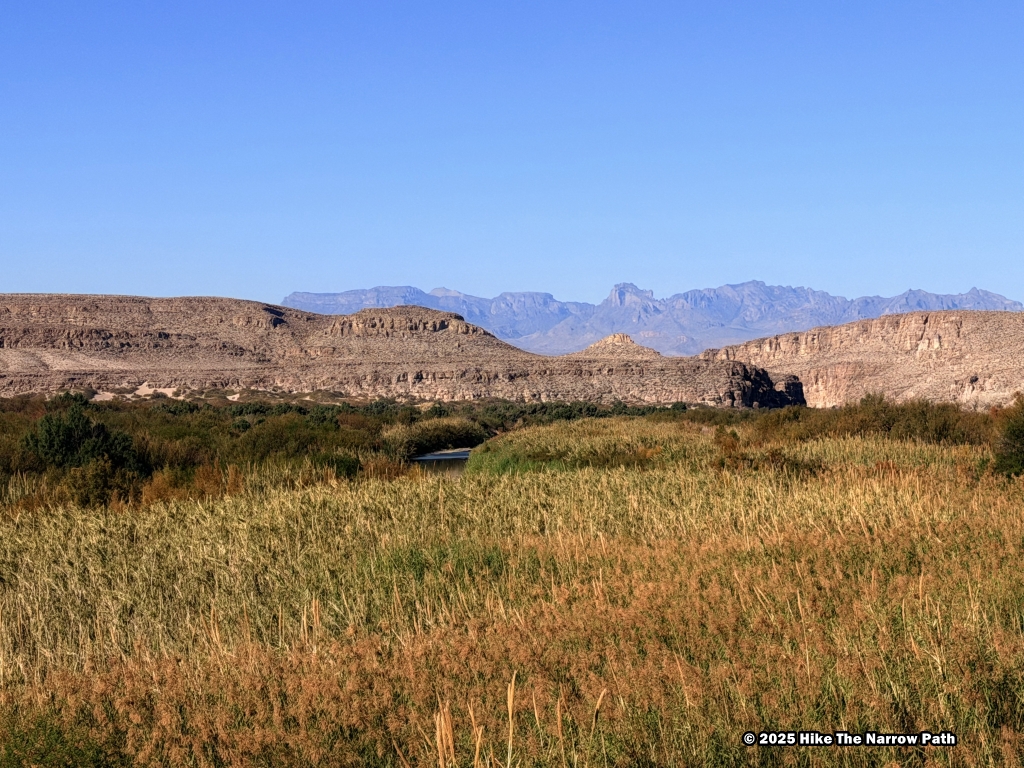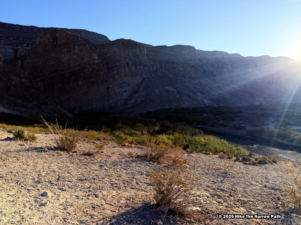 Our first hike was at Boquillas Canyon Trail, an easy 1.4 mile out and back trail. When first starting the trail, there are some cute Mexican gifts for sale – don’t buy them though as they are illegally sold items. Although this trail is easy, there are a lot of steps. There was also a lot of horse poop, so watch your step. Toward the end we saw a wild horse. It was watching us for a few moments then headed across the Rio Grande to Mexico.