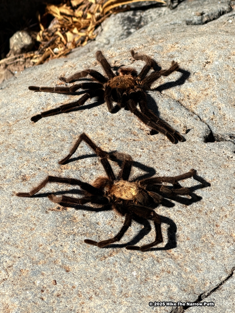 Next, we had lunch before starting the Upper Burro Mesa Pouroff Trail, a 3.5 mile moderate hike. It had rock scrambling and overall, was a lot of fun. At the end you climb down some rocks that lead you to an overlook. It can be a little tricky getting back up. There were a few nice people over there helping people get back up. On the way back, we found some tarantulas sun bathing. Overall great hike!