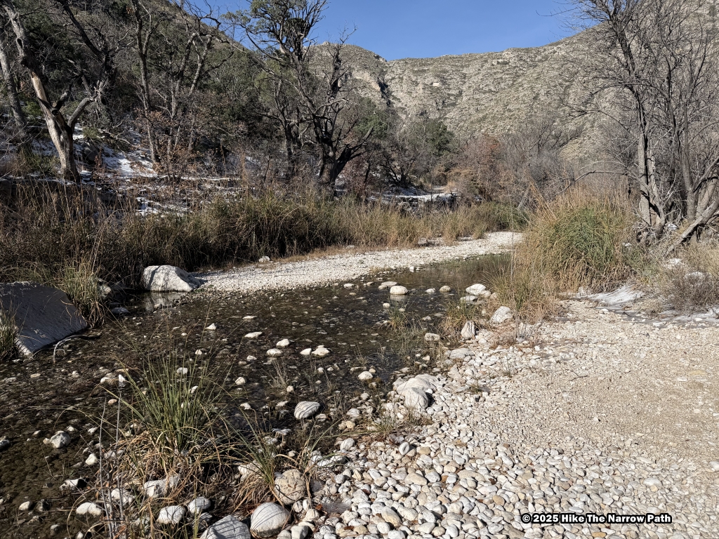 Our next hike was the Smith Spring Trail Loop, a 2.3 mile easy-moderate loop. This loop started at the Frijole Ranch Trailhead, then looped around to the Frijole Ranch Museum, Manzanita Spring, and the Smith Spring. The Manzanita Spring had a lot of water. The part going to the Smith Spring was mostly sun. Once there the spring had a lot of flowing water. There was a nice area to sit at the spring in the shade.