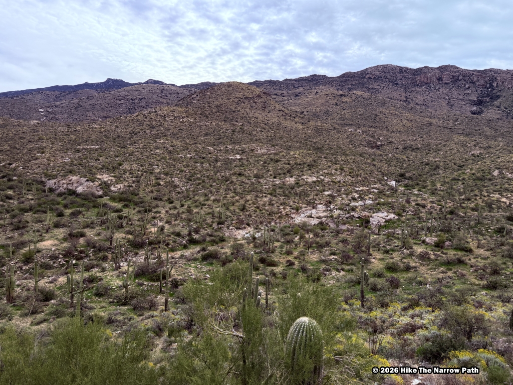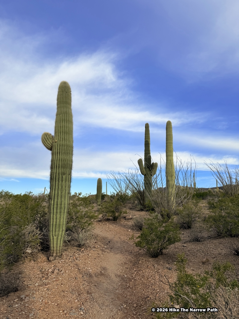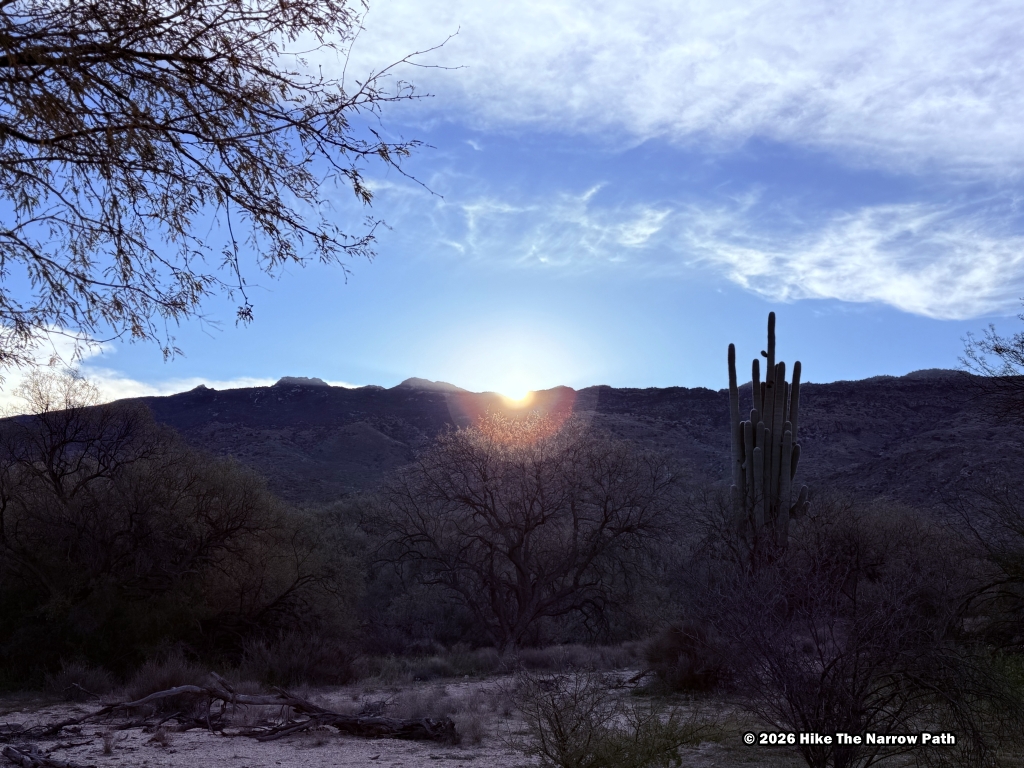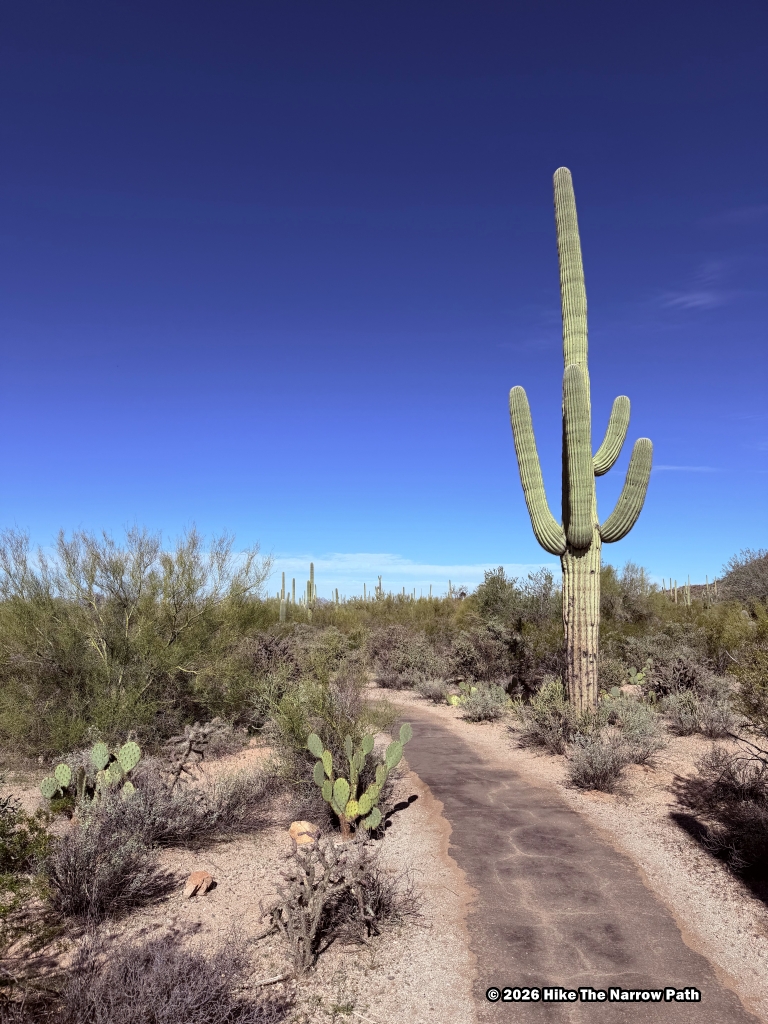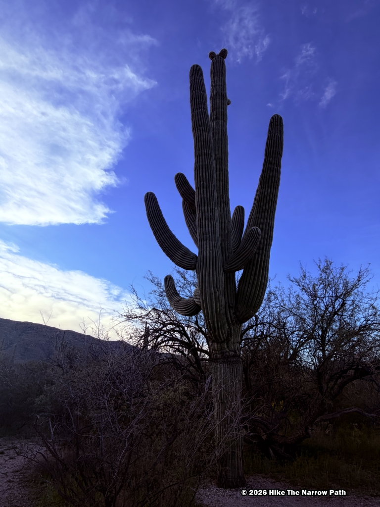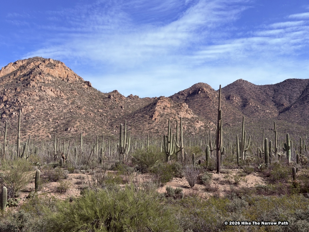 Our final trail at Saguaro National Park was Freeman Homestead Trail, an easy 1 mile hike. Based on the name we were expecting to see more of a homestead but there wasn’t much left so it was a little disappointing in that regard. It was a fine trail though. The temperature was up to 75* at this point.