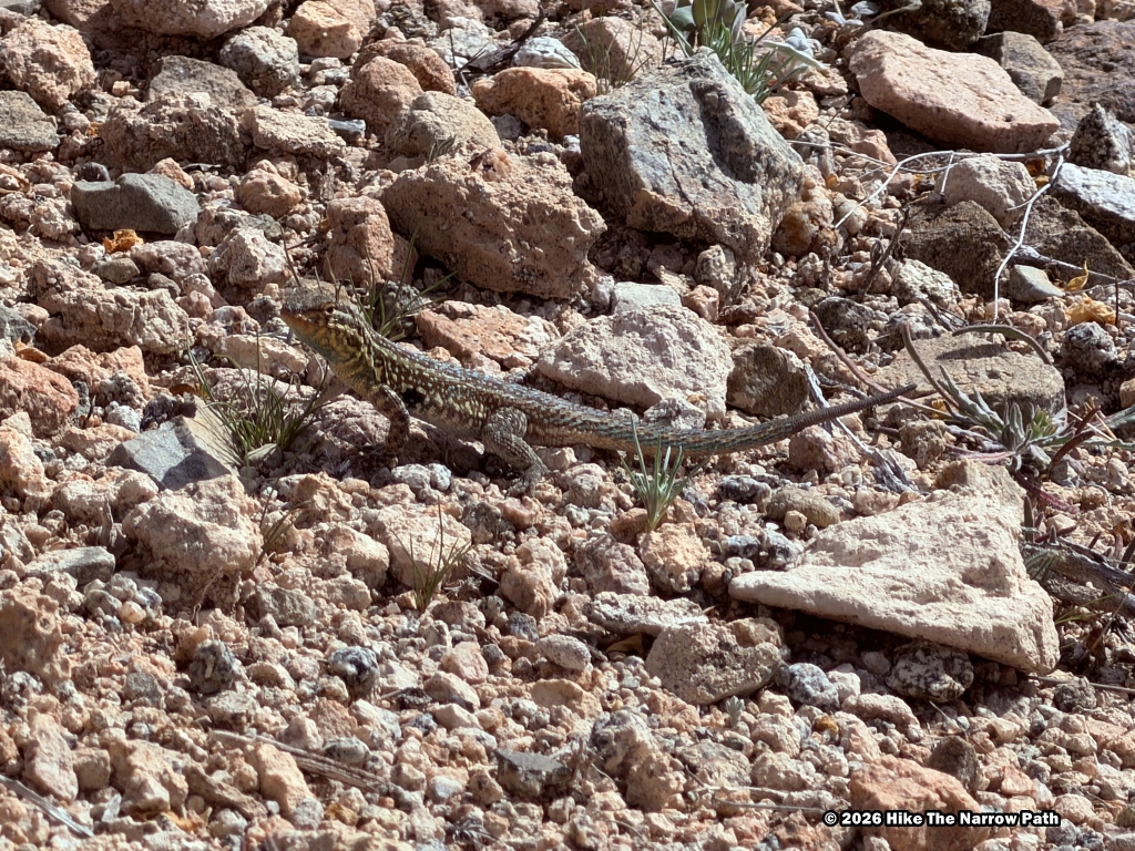 We started the afternoon off with the Cactus Wren/Signal Hill/Manville Loop, an easy 4.3 miles trail. Unfortunately Signal Hill was closed due to aggressive bees so we had to take a short side trail around it. At one point we saw a jack rabbit run across the road, which was pretty cool. While on this trail, it was full sun the entire time. Toward the end we saw a little lizard run across the trail.