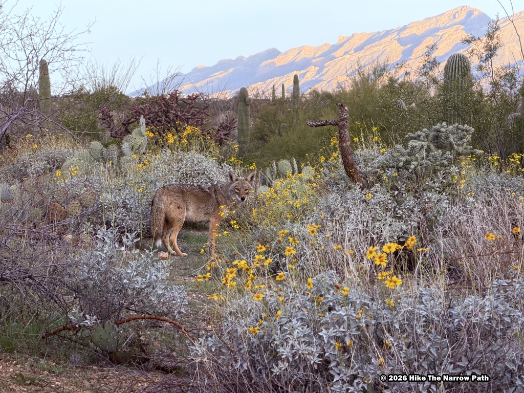 On the way to the Desert Ecology Trail, a quick and easy 0.25 mile trail, we saw a coyote run across the road and look back at us! Once to the trail, it was a nice stroll on a paved path. It had lots of birds; 13 types in a 60 second recording according to the Merlin Bird ID app. Don’t skip this, it’s a cool trail and doesn’t take much time at all.
